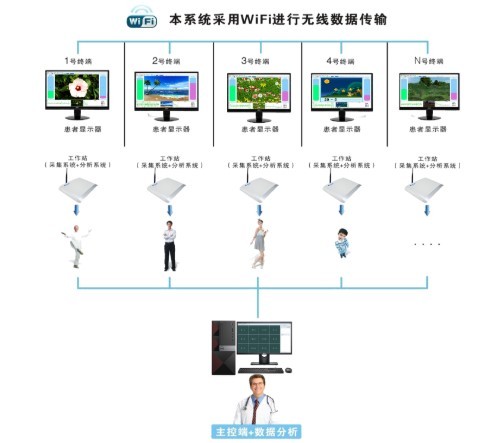 2.服務(wù)器通過(guò)無(wú)線路由器,可連接一臺(tái)或多臺(tái)治療儀主機(jī),服務(wù)器具有實(shí)時(shí)控制功能,可實(shí)時(shí)控制各治療主機(jī),亦具有用戶管理功能、播放模式選擇、訓(xùn)練方案編輯、療效報(bào)告功能、數(shù)據(jù)傳輸功能。